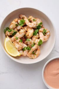 For veggie lovers, I usually recommend Crispy Asparagus or Healthy Broccoli Salad as a side dish with shrimp. If you prefer to go in a different direction, I suggest either Au Gratin Potatoes or Gluten-Free Scalloped Potatoes to complement the shrimp.