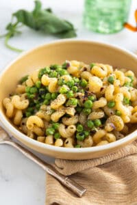Pasta is always better with veggies. Whenever I find myself making pasta, I always look for ways to introduce more vegetables into the dish. While I was growing up, my mom and grandmother frequently cooked shells and peas for dinner, which is an even simpler version of this recipe for pasta with peas. While I’m sentimentally attached to shells and peas, I can objectively say that this recipe for pasta with peas is even better, and it can work with shells, elbows, or any other type of small pasta.
