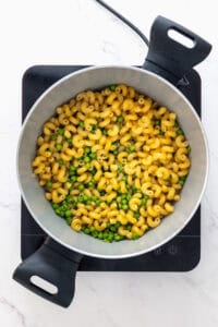 Since this recipe is all about letting the pasta and peas shine, you don’t want to take too much attention away from those ingredients. That being said, there’s plenty of room in the pot for extra ingredients. If you’re a fan of pesto, I would consider adding a tablespoon or two to give the dish even more green color and extra nutritional value. You can also consider adding a bit of protein, such as bacon or diced ham. Note that just a little bit of either of these can add a lot to the taste and texture. I find that small pieces of bacon, sautéed before you add the onions to the pot, are the best way to complement the sweetness of the peas.
