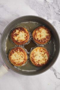 You can prepare the patties ahead of time and place them on a baking sheet with parchment paper. Cover and refrigerate for up to 2 days before frying. Cooked leftovers can be refrigerated in airtight containers for up to 3 days. For longer storage, store in freezer-safe bags, layering the pancakes with parchment paper so they don’t stick together. Freeze for up to 3 months. Let them thaw in the fridge overnight before reheating in the oven at 350°F for 10-15 minutes.