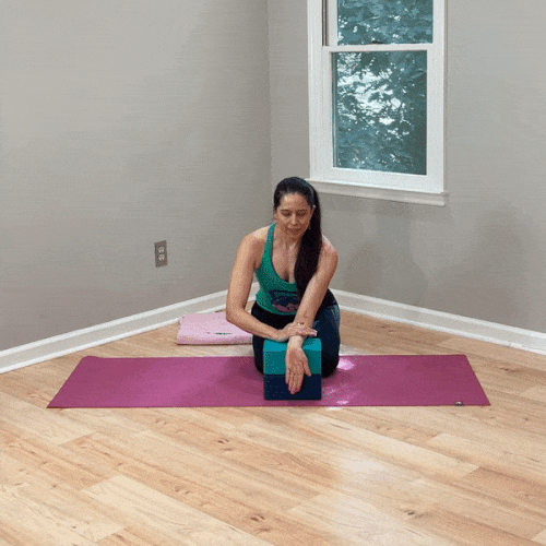 In order to truly isolate circular wrist movement, I love placing my forearm on a stack of two yoga blocks. This way, I can keep my forearm still on the yoga blocks as I truly rotate my wrist in controlled circles.