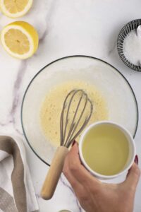 Continue whisking and gradually incorporate a couple drops of oil at a time. Keep going until the mixture begins to thicken.