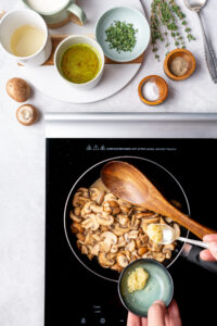 Heat butter in a large skillet over medium heat. Add sliced mushrooms and cook until golden, about 5-7 minutes.