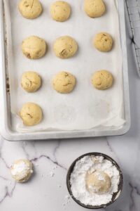 One of the key elements of tea cookies is their light, melt-in-your-mouth texture, and powdered sugar plays a big role in that. Unlike granulated sugar, which can create a denser, chewier cookie, powdered sugar keeps the dough delicate and soft. It also makes for the signature dusting on top, which gives these cookies their classic look. Some bakers like to double-coat them — once when they’re warm so the sugar melts slightly, and again after they’ve cooled for a perfect snowy finish.