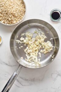 While I recommend brown rice when making vegan fried rice, any type of long-grain rice like jasmine or basmati will also work well.