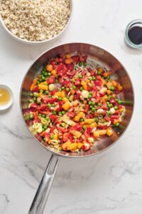Allow the vegan fried rice to cool before putting the leftovers in an airtight container. In the fridge, the rice should remain good for up to 5 days. However, if you used leftover rice to make the dish, it isn’t recommended to store it and reheat it again later.