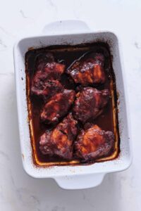 Chicken is a lean white meat that’s high in protein and low in fat, though the chicken thighs used in this recipe are higher in fat than chicken breast or wings. Another benefit of chicken is that it’s usually cheaper than pork, so if you need an affordable and easy dish to make in a pinch, this one will do the trick.