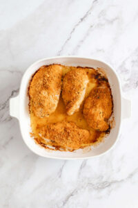 This dish has a crunchy outer layer, with tender chicken underneath, and an overall buttery and savory taste. Plus, your kids will love getting to help out in the kitchen by crunching up crackers! (And if they’re anything like I was, stealing one or two for a snack.)