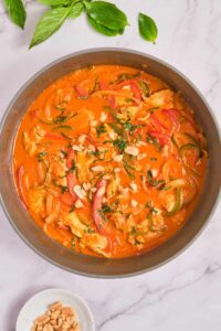 This panang curry is an excellent source of lean protein from the chicken breast, and the vegetable blend contributes fiber and essential nutrients. The recipe also calls for coconut milk, which makes this curry naturally dairy-free!