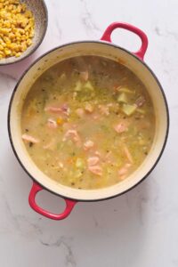 Add salmon chunks and corn to the pot. Cook until salmon and corn are cooked through, about 5-8 minutes.