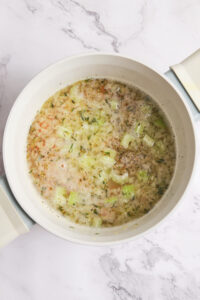 You can cook your rice in the soup, as the recipe suggests, or you can add precooked rice at the end. Don’t add precooked rice too early, or it might get too mushy.