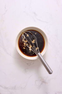 In a small bowl, whisk together soy sauce, water, brown sugar, honey, mirin, sesame oil, and cornstarch until smooth.