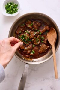 It’s typically best to serve beef teriyaki over a bed of Steamed Rice. But if you prefer, you can also use Brown Rice Pilaf, Vegetable Fried Rice, or Quinoa with Roasted Vegetables. As mentioned, mixing beef teriyaki with vegetables is also a good idea. However, if you don’t want to put your veggies in the pan with the meat, I would suggest a side of Steamed Broccoli or perhaps Easy Sautéed Broccoli.