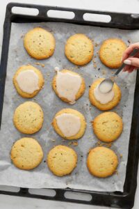 Baking cookies at home from scratch allows you to control the ingredients that go into them. And while these cookies don’t contain any of the additives or preservatives that you would find in most pre-packaged cookies, they are still high in sugar and saturated fat, so are best enjoyed in moderation. To make these bite-sized treats vegan-friendly, replace the butter with a 1:1 ratio of coconut oil, vegetable oil, or vegan butter. The egg can be replaced with 1/4 cup of applesauce or a chia or flaxseed egg (just mix 1 tablespoon of seeds with 2 1/2 tablespoons of water). You’d also need to substitute the eggnog in the icing with a plant-based milk.