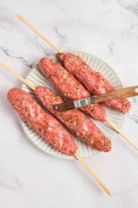 Turkish kebabs are made with ground meat and spices that are formed into elongated patties on skewers and then grilled. Shish kabobs on the other hand, often use larger chunks of meat. There are also spicy Adana kebabs, mild Urfa kebabs, flavorful seekh kebabs from India, or tender kofta kebabs that are enjoyed all over the Middle East and North Africa.