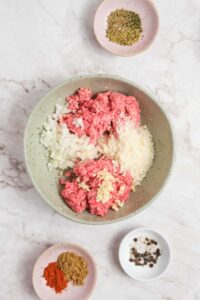 Gyro has a lot of protein due to the beef and lamb, plus a small amount of fiber from the veggies. It is heavier in calories and high in fat, so if these are concerns for you, it’s best to keep this gyro recipe on occasional repeat. If you need a vegetarian option, try Falafel Gyro instead. You can also make it gluten-free by using a gluten-free pita, as well as subbing the bread crumbs for gluten-free bread crumbs.