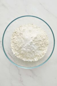 In a large mixing bowl, combine the flour, baking powder, and salt. Add sugar if using.