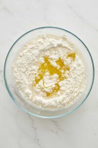 Add water and olive oil to the dry ingredients and mix until a dough forms.