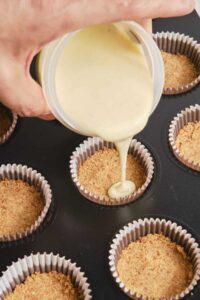 Press about 1 tablespoon of the mixture into each liner, making sure it is compact. Pre-bake the crusts for 6 minutes.