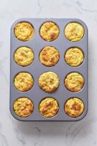 The best way to prep potato puffs is to mix all the ingredients together in a bowl the night before. Then, cover the bowl with plastic wrap and refrigerate overnight. Grease and fill your muffin tin the next day to bake and enjoy!