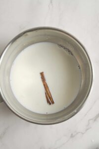 In a saucepan over medium heat, combine the remaining milk, brown sugar, and cinnamon stick. Stir until the sugar dissolves and the mixture is warm.