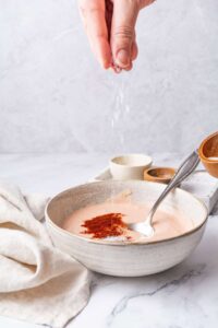 I headed back to the kitchen, scraped the mayo and ketchup into a bowl, and doctored it up with the simple addition of smoked paprika (my new favorite seasoning) and pickle juice. Adding a sprinkle of salt and pepper, I realized I had concocted the most incredible dipping sauce for fries, fish, chicken tenders, veggies, and more. If you don’t have pickle juice, use apple cider vinegar instead.