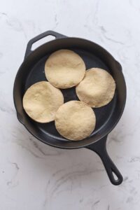 Heat tortillas on a skillet until flexible, about 30 seconds per side.