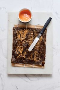 Despite its name, I wouldn’t describe this spicy California roll as particularly piquant. The spicy mayo mixture in the dish is fairly mild, and gives the roll a little kick. You can adjust the spice level to your liking, even removing the sriracha entirely for a more traditional California roll.