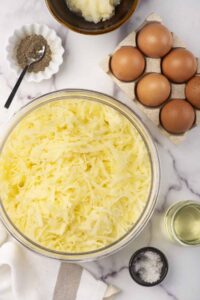 - 10 medium russet potatoes peeled and grated