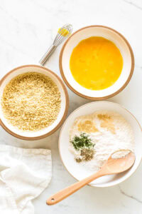 Keep in mind that you’ll also need to exchange the egg for a vegan egg replacement, and make sure your breadcrumbs are 100% plant-based. The key to vegan eating is to scope out the best plant-based products on the market and always read the ingredients.