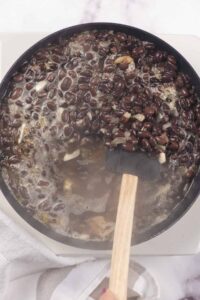 Add the drained black beans and water (or vegetable broth) to the skillet. Stir to combine.