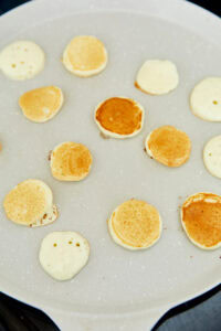 Scoop about 1 tablespoon of batter onto the skillet for each mini pancake, spacing them slightly apart.