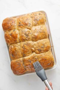 Using a pastry brush, evenly brush the butter mixture over the tops of the sliders.