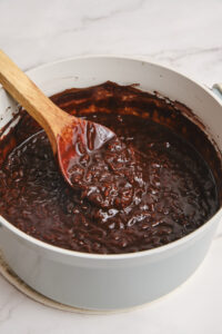 Remember to stir the mixture occasionally to prevent the rice from sticking to the bottom of the pot. I like to do this every few minutes. When you add the vanilla and sugar, stir continuously until the sugar dissolves. I’ve made this with coconut sugar, and because that takes longer to dissolve, I add it at the start with the rice. Finally, make sure to remove your champorado from the heat as soon as it is done cooking.