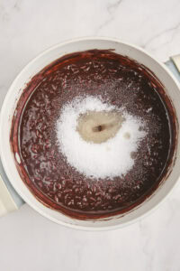 Lower the heat to medium-low. Add the unsweetened cocoa powder and mix until dissolved.