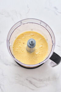 Blend the eggs, cottage cheese, garlic powder, salt, and black pepper in a blender until the mixture is smooth.
