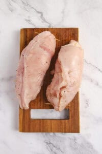 Preheat oven to 425°F. Season both sides of the chicken with salt and pepper.