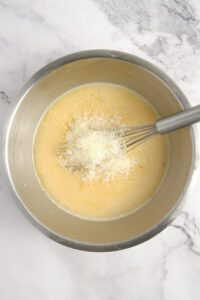 Pour the blended mixture into a bowl and stir in the shredded Gruyère cheese.