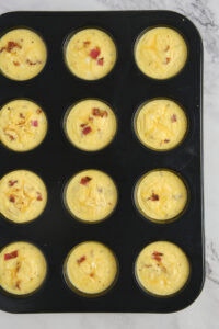 Evenly fill each muffin cup about 2/3 full with the egg mixture.