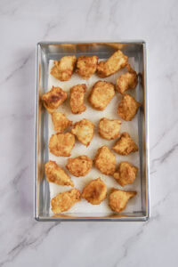 Honestly, no. If you make these ahead of time, they’ll lose a lot of what makes them so darn good. If you must make them ahead of time, though, you can batter the nuggets a few hours beforehand and keep them in the fridge. Then fry them the same day. I’ve tried battering chicken nuggets the night before and, well, let’s just say I had a mess on my hands instead of an easy dinner.