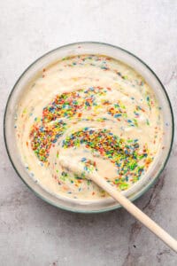 Gently fold in the rainbow sprinkles. This helps keep the colors distinct in the batter.