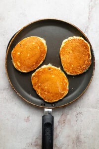 Pour about 1/4 cup of batter for each pancake. Cook until bubbles form on the surface and the edges set, about 1-2 minutes. If the sprinkles begin to melt while the pancake is cooking, sprinkle some more on top before flipping it.