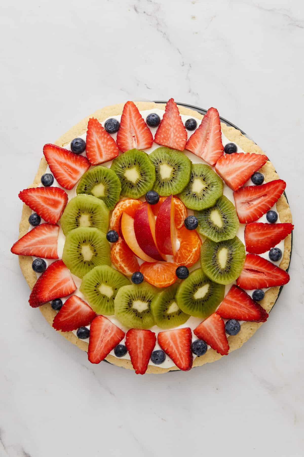 Despite how gorgeous it looks, this is one of the easiest and tastiest desserts you can make. It comes together in less than an hour, requires zero culinary skill, and is a huge hit with everyone from kids to seniors. After all, who doesn’t love cookies, icing, and fruit?