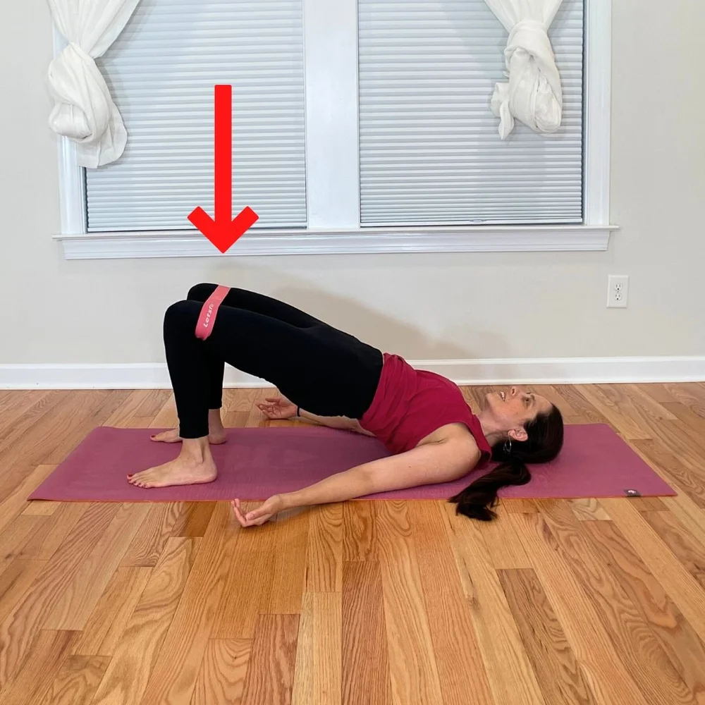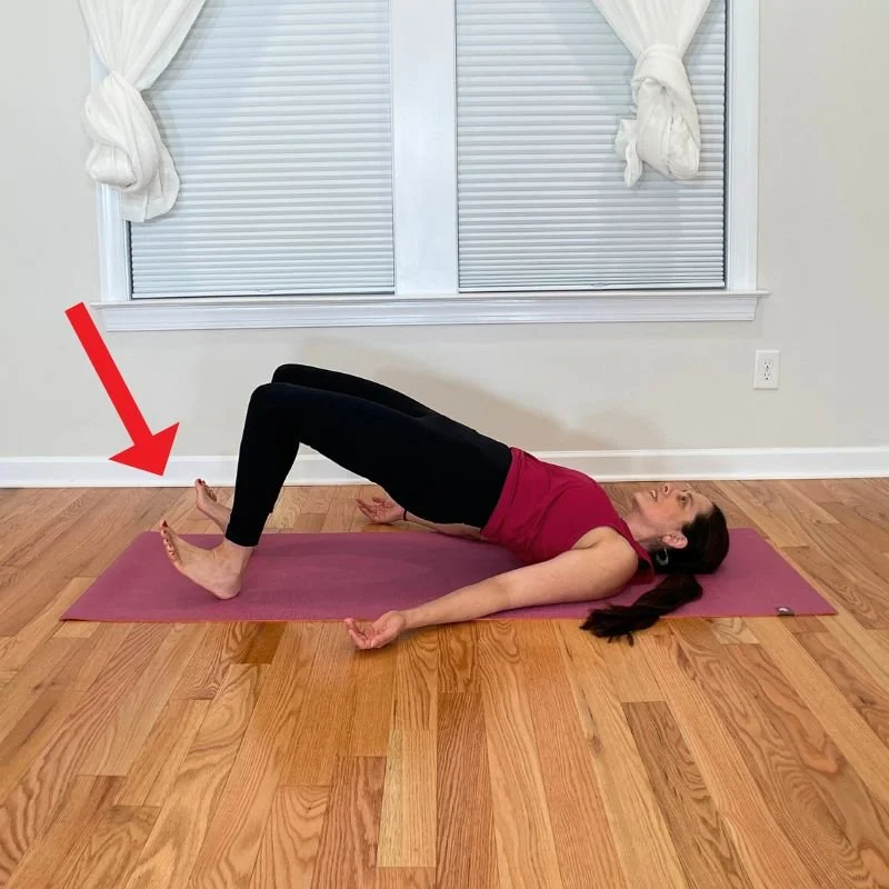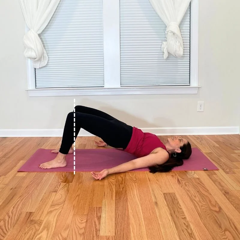 But here’s the catch: this effect is more relevant in the rehab-style bridge setup – where the feet are positioned slightly forward of the knees – than it is in the yoga-style bridge, where the heels are typically stacked directly under the knees.