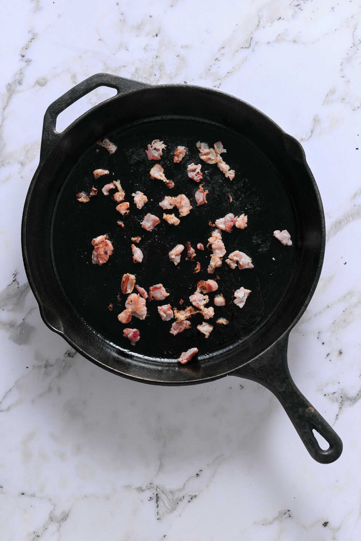 In a large pot, cook the chopped bacon over medium heat until crispy. Remove the bacon with a slotted spoon and set aside, leaving about 1 tablespoon of bacon fat in the pot.