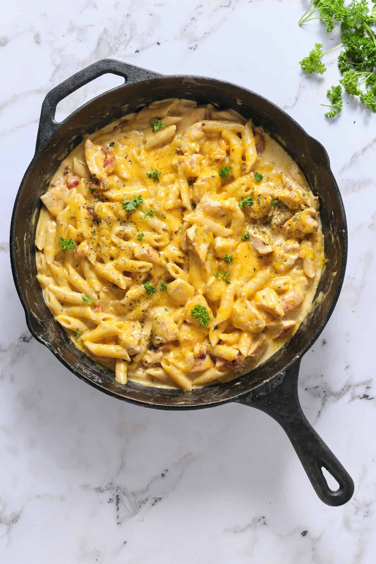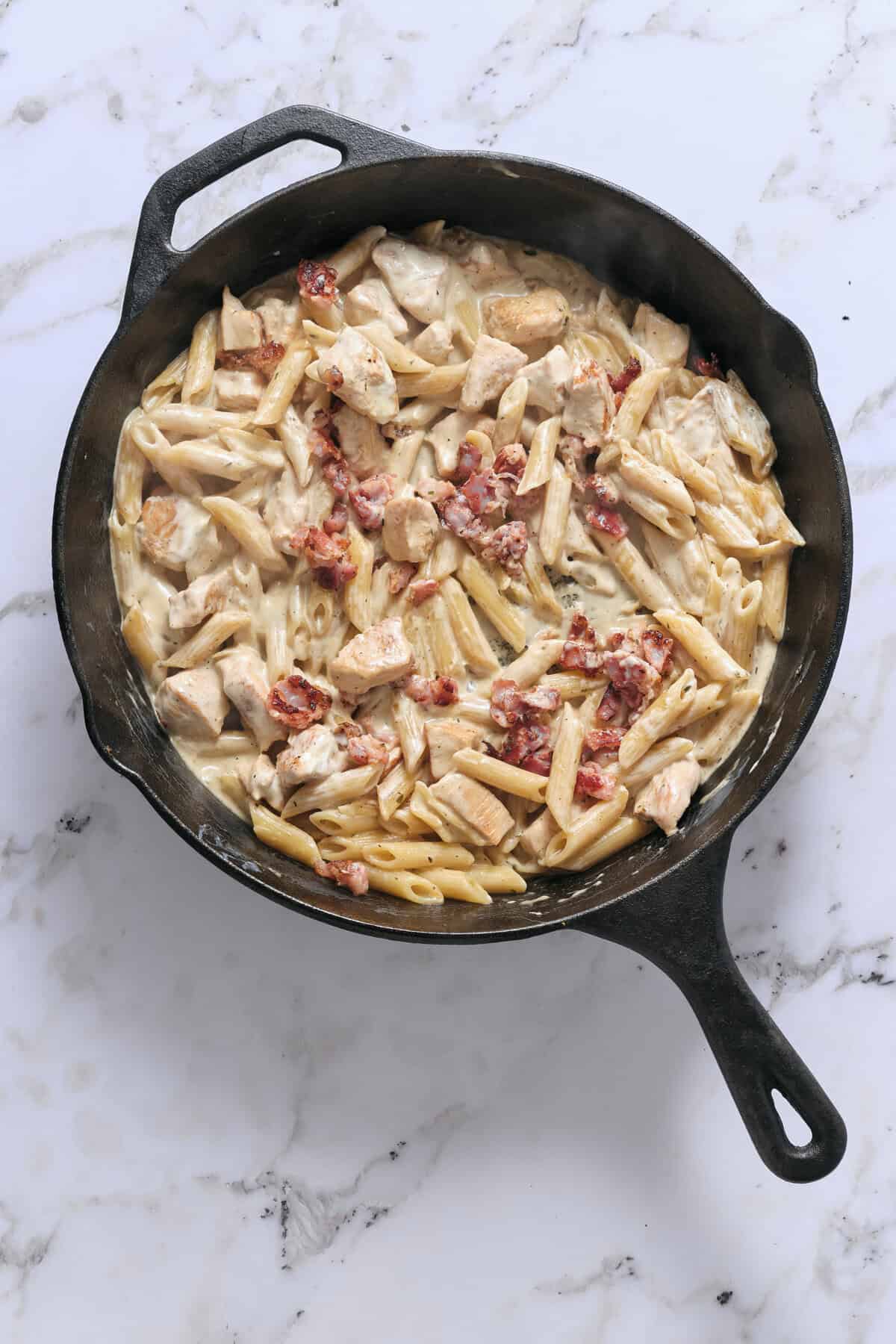 Having gone to culinary school in Italy, I typically tend to veer away from Italian-American pasta recipes because I often find them too heavy. However, this crack chicken penne recipe is my one exception. The bacon renders its smoky fat, which becomes the base for browning the chicken and infusing it with incredible flavor. The ranch seasoning might sound odd, but it adds that familiar, savory taste we all crave. The pasta cooks directly in the chicken broth, absorbing every bit of that rich, savory liquid. Then comes the cream cheese and cheddar cheese finale that transforms this into the cheesiest pasta dish!