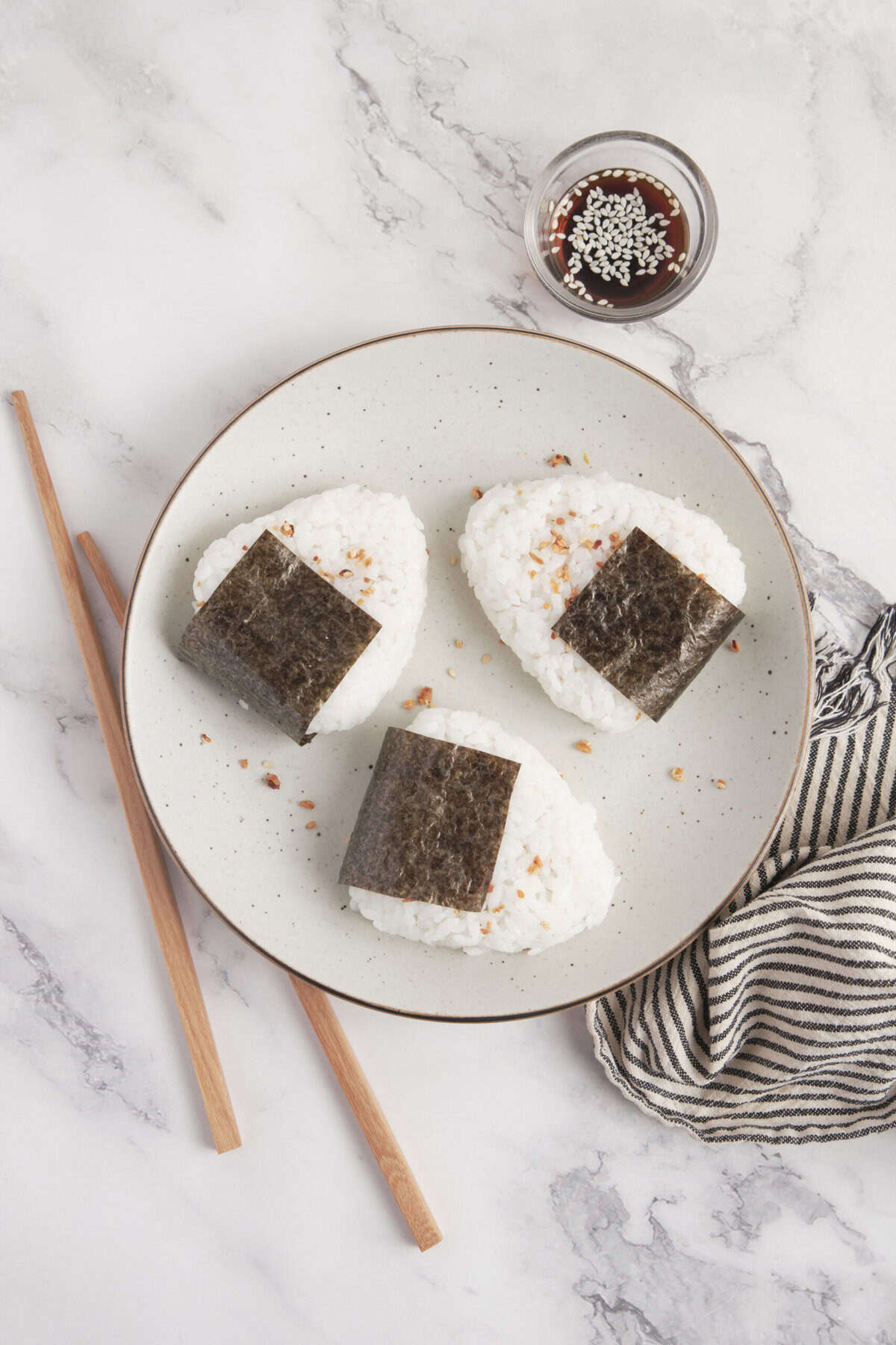 Onigiri are best the day you make them! That’s simply how sushi-style recipes are. That said, you can store them in your fridge for up to 3 days. Remove the nori (it’ll become soggy) and ensure each rice ball is wrapped in plastic before storing them in an airtight container. Keep in mind that the rice will harden, and the texture will simply not be as fresh. To serve, I recommend using your microwave to soften the rice. Cover the onigiri with a damp paper towel and microwave at 20-second intervals until slightly warm and softened. Also, don’t forget to wrap it with fresh slices of nori!