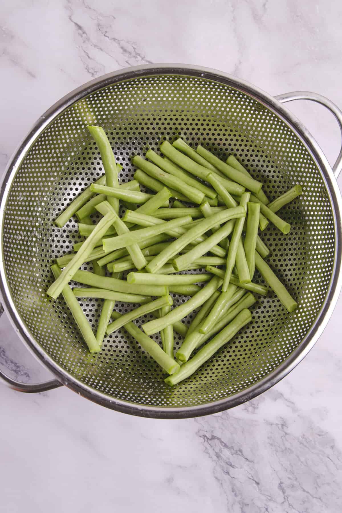 Think about it. When I mention the words ‘green beans,’ what comes to mind for you? Casserole, probably! Am I right? Some concoction of beans cooked down until almost mushy, doused in a can of cream-of-whatever soup, and notoriously not green after that process is done. Sadly, that type of recipe can lose the inherent flavor of the beans, let alone their sturdy texture and the ‘snap’ they can bring to a good vegetable side.