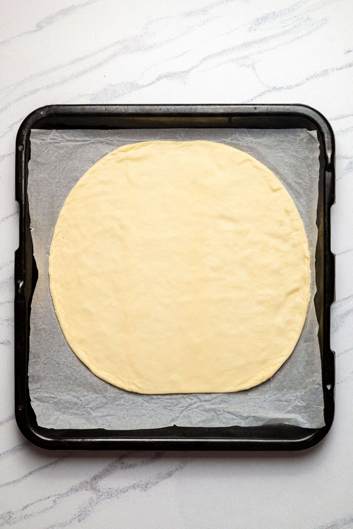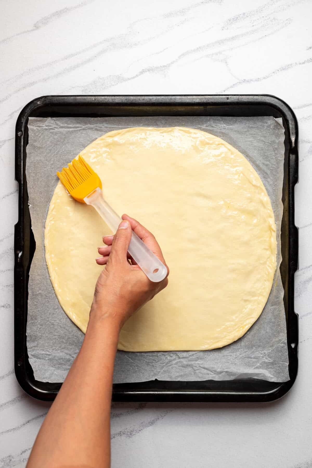 If you like a crisp edge, you can brush a little olive oil along the perimeter of the dough.