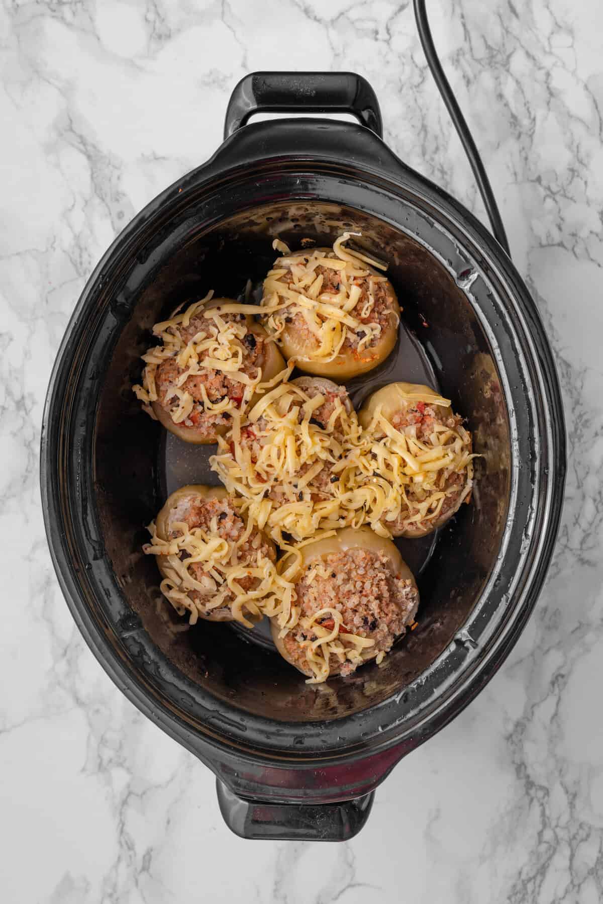 Cover the slow cooker and cook on low for 4-6 hours or until the peppers are tender and the filling is cooked through.